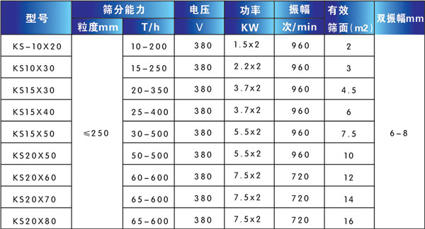 KS型系列是一種廣泛用于礦山、冶金、煤炭、電力、建材、耐火材料等行業大塊狀物及中小顆粒物料的篩分設備。